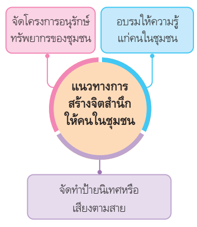 การนำทรัพยากรมาใช้เพิ่มมากขึ้น ทำให้ทรัพยากรลดน้อยลง ดังนั้น จึงควรสร้างจิตสำนึกให้คนในชาติรู้คุณค่าของทรัพยากรที่มีอยู่จำกัด ดังนี้