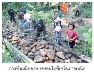 1. การทำเหมืองฝาย เป็นการจัดการแหล่งน้ำ เพื่อการเกษตร การอุปโภคและการบริโภคของคนไทยทางภาคเหนือที่มีมาแต่โบราณ ระบบนี้ใช้การแบ่งปันน้ำระหว่างชุมชนต่าง ๆ โดยมีการตั้งคณะกรรมการจัดสรรน้ำขึ้นมาดำเนินการ และมีบุคคลที่ชาวบ้านยอมรับเป็นหัวหน้า ระบบเหมืองฝายถือเป็นภูมิปัญญาไทยที่ใช้ความยุติธรรมเป็นหลัก กล่าวคือ การจัดสรรน้ำจะใช้สัดส่วนไร่นาของพื้นที่ทำาการเกษตรเป็นเกณฑ์ด้วยวิธีการนี้ จะทำให้ชาวบ้านที่อาศัยอยู่ตามต้นน้ำและปลายน้ำได้รับประโยชน์จากการจัดสรรน้ำอย่างเท่าเทียมกัน ดังนั้น ชาวบ้านจึงอยู่ร่วมกันอย่างสงบสุข