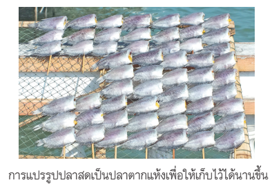 2. การแปรรูปอาหาร คนไทยในภูมิภาคต่าง ๆ มีการแปรรูปอาหารในรูปแบบต่าง ๆ เช่น การหมักและการดองเพื่อเก็บอาหารไว้สำาหรับรับประทานได้นาน ๆ เช่น ชุมชนที่อยู่ริมทะเลส่วนใหญ่ประกอบอาชีพประมง