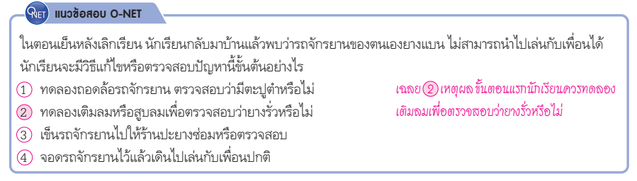 ปัญหาแต่ละปัญหามีวิธีการแก้ไขได้หลายวิธี การแก้ปัญหาอย่างเป็นขั้นตอนจะช่วยให้แก้ปัญหา ได้อย่างมีประสิทธิภาพ รวมถึงการใช้เหตุผล เงื่อนไข หรือกฎเกณฑ์ที่เกี่ยวข้องกับปัญหานั้น เพื่อ ตรวจสอบความสมเหตุสมผลหรือความเป็นไปได้ ในการแก้ปัญหาต่าง ๆ