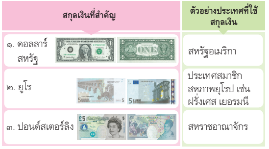 สกุลเงินสำคัญที่ใช้ในการซื้อขายแลกเปลี่ยนระหว่างประเทศ