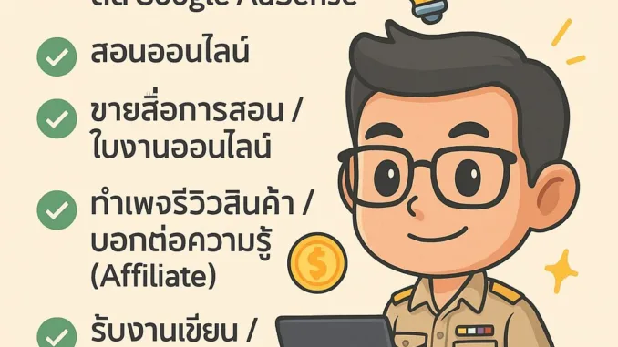 ครูไทยในยุคดิจิทัลสามารถหารายได้เสริมได้หลากหลายวิธี โดยไม่จำเป็นต้องเหนื่อยเพิ่ม แค่รู้วิธีปรับใช้เทคโนโลยีให้เกิดประโยชน์ เลือกช่องทางที่เหมาะกับตัวเอง แล้วลงมือทำอย่างสม่ำเสมอ ก็สามารถ “เปลี่ยนเวลาว่างให้กลายเป็นรายได้” ได้แน่นอน