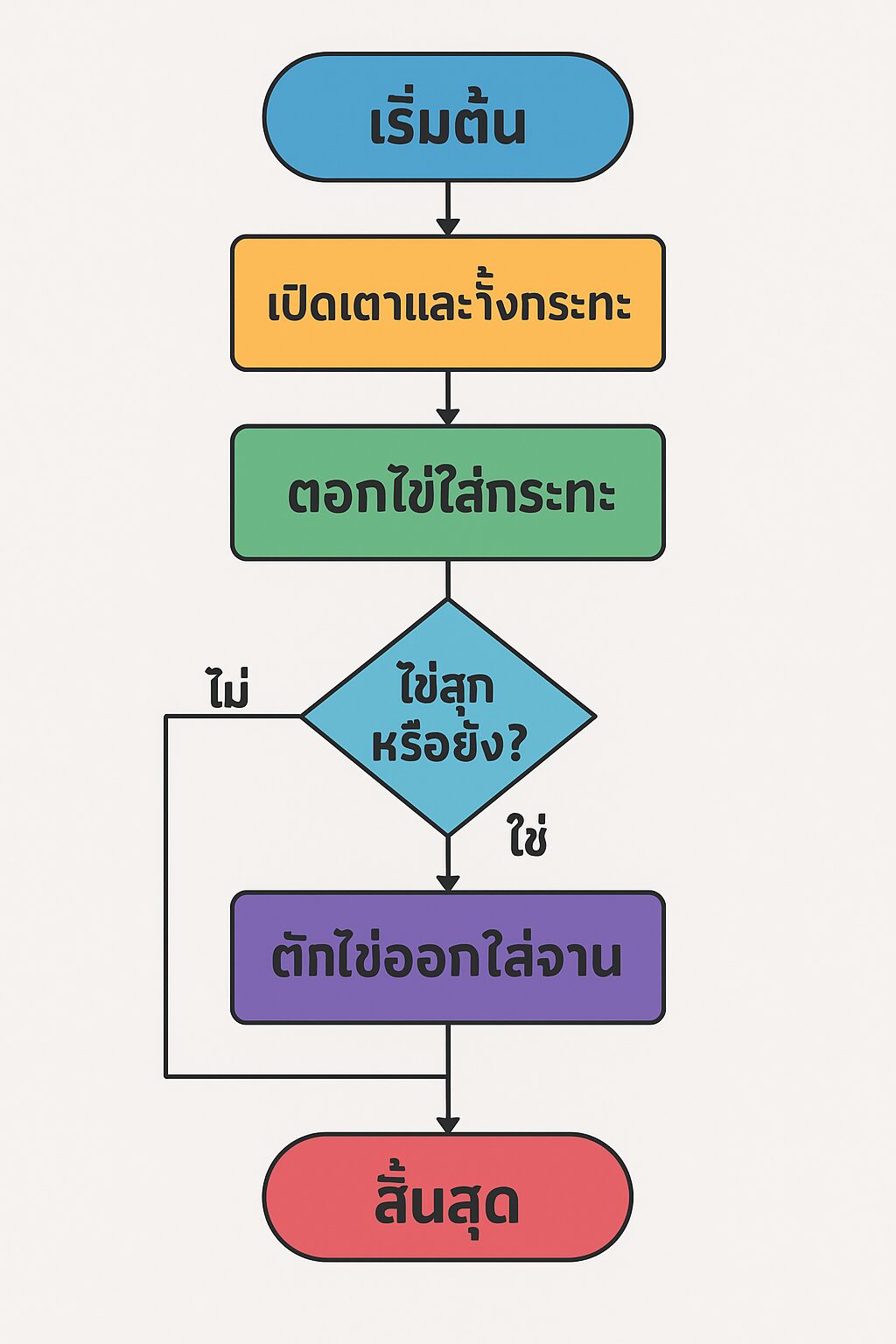 4️⃣ การออกแบบขั้นตอน (Algorithm Design) — เขียนลำดับการแก้ปัญหา