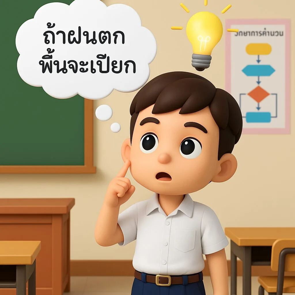 ถ้าอากาศครึ้ม → อาจมีฝนตกเพราะเมฆมากมักมาพร้อมฝน