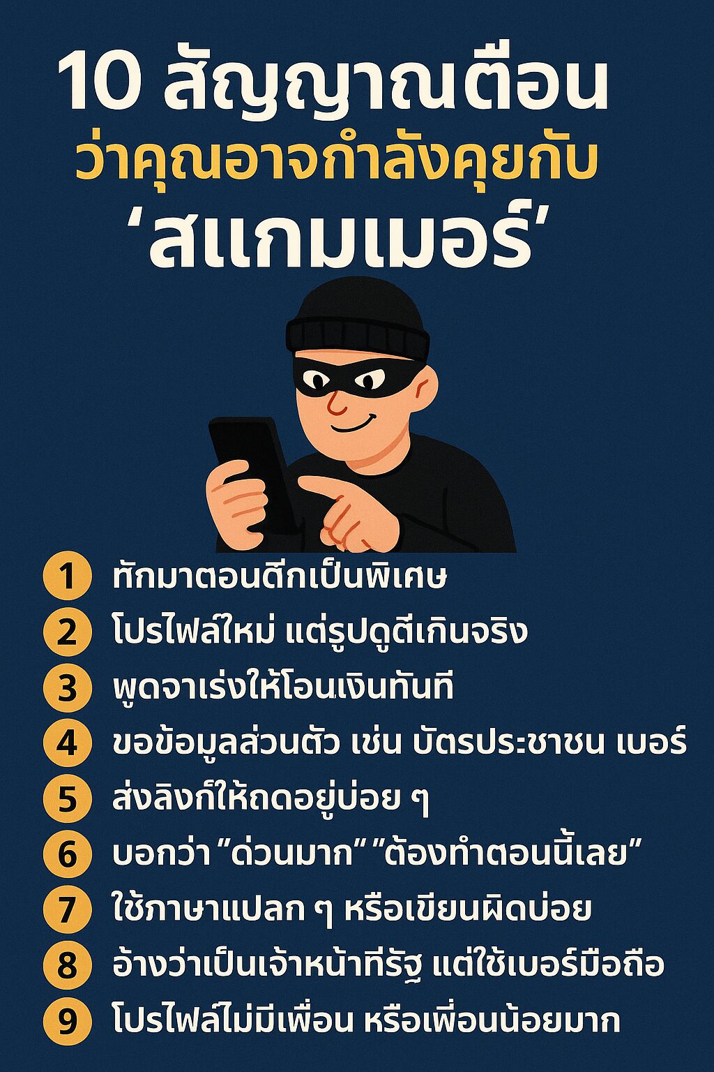 สแกมเมอร์ไม่ใช่เรื่องไกลตัว ยิ่งปี 2568 รูปแบบยิ่งซับซ้อนขึ้นเรื่อย ๆ การรู้ทันและมีสติคืออาวุธสำคัญที่สุด อย่ารีบตัดสินใจ ไม่คลิกลิงก์ ไม่โอนเงิน และตรวจสอบทุกครั้งก่อนทำธุรกรรมใด ๆ