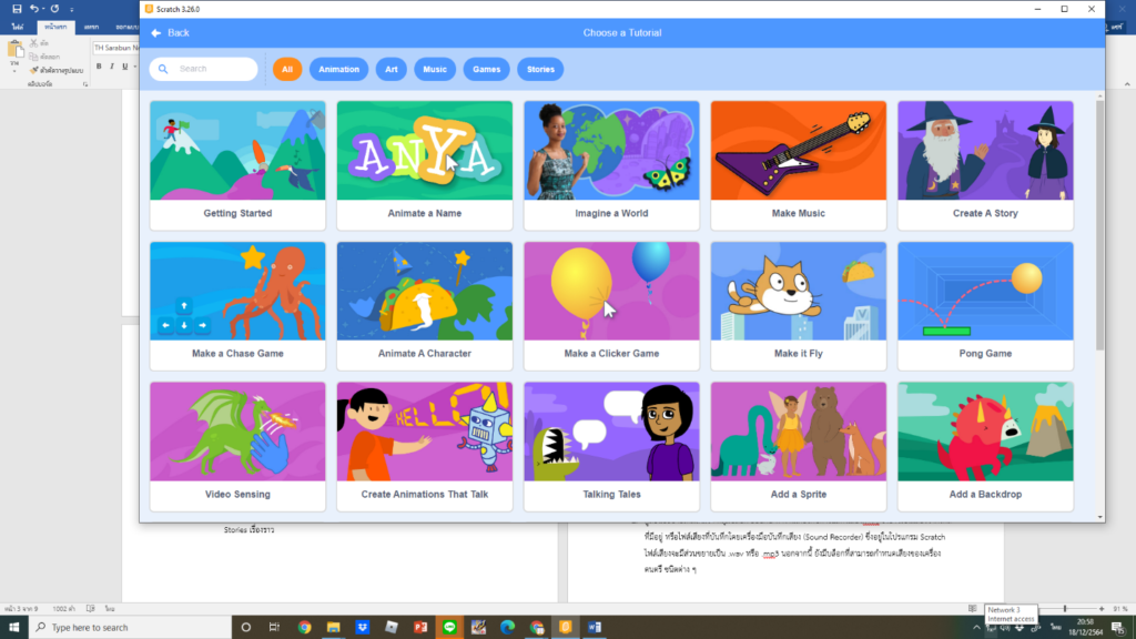 เมื่อคลิกเลือกบทเรียนที่สนใจ จะมีหน้าต่างบทเรียนขึ้นมา ผู้เรียนสามารถทำตามทีละขั้นตอน เพื่อให้ได้โปรแกรมตามที่สนใจ โดยสามารถใช้หลายบทเรียนมาประยุกต์ใช้ร่วมกันก็ได้