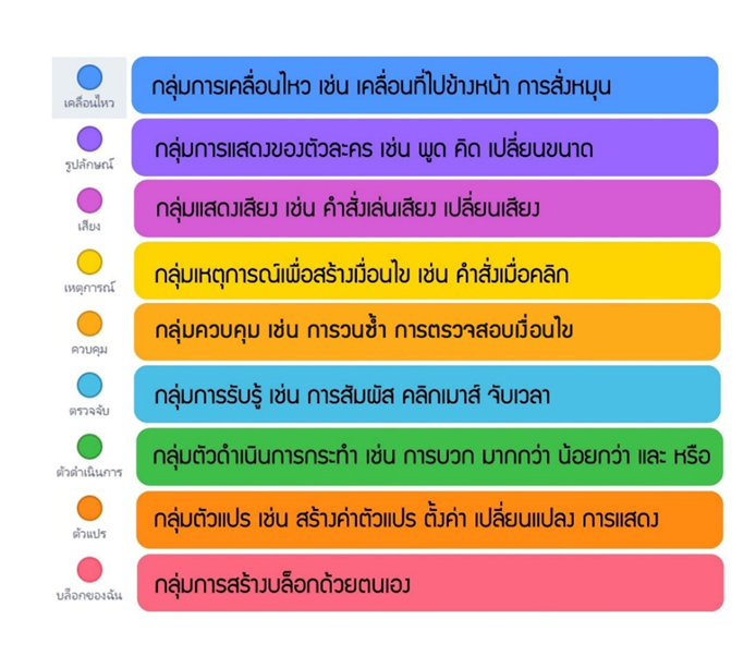 บล็อกคำสั่งของโปรแกรม Scratch มีกี่บล็อกคำสั่ง และมีบล็อกคำสั่งใดบ้าง?