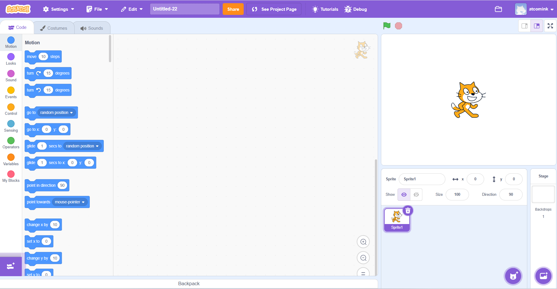 การเคลื่อนไหว (Motion)Move 100 stepsขยับ/หมุนสไปรต์